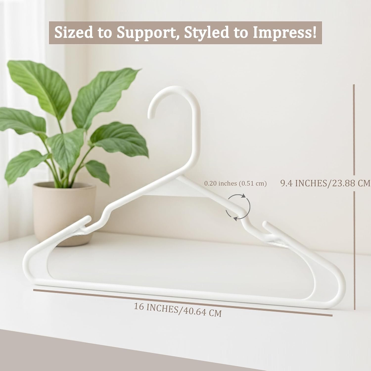 • Ultra Slim Design: At just 0.25″ thick, this model maximizes space, allowing you to double your clothes storage compared to traditional options. White hangers give a modern, coordinated look in any setting.